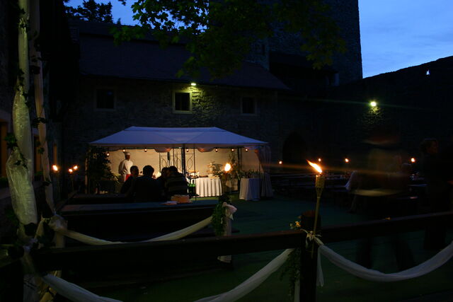 Ať už si vyberete raut v prostorách naší restaurace nebo v prostorách venkovní zahrádky během dne a nebo později večerní raut, vždy budete mít na očích dominantu hradu Helfštýna – vyhlídkovou husitskou věž. Původně se nad druhým nádvořím tyčily dvě věže, bohužel do dnešních časů se dochovala pouze jedna.